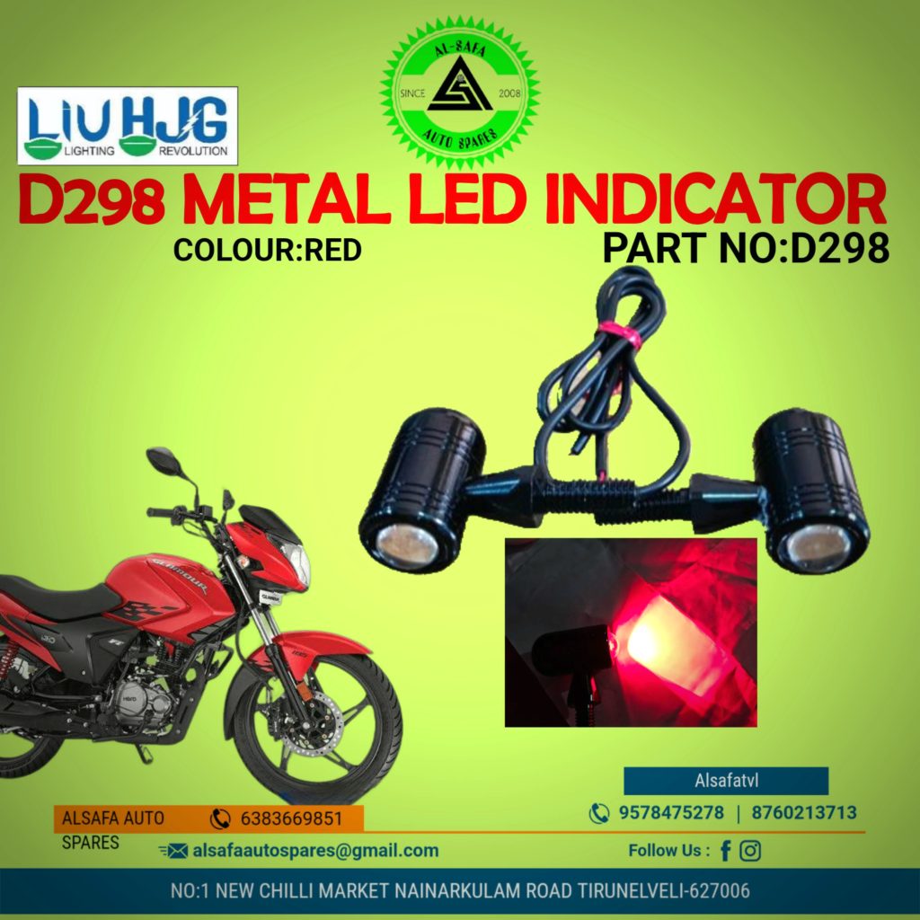 in Bike Accessories, Extra Fittings, LED Indicators D298 METAL LED INDICATOR D298 by Alsafa Autospares October 9, 2023, 10:45 am 0share WhatsApp Facebook 0share WhatsApp Facebook See more Previous article OMNI PUNCTURE STICKERS Next article D191 LED INDICATOR