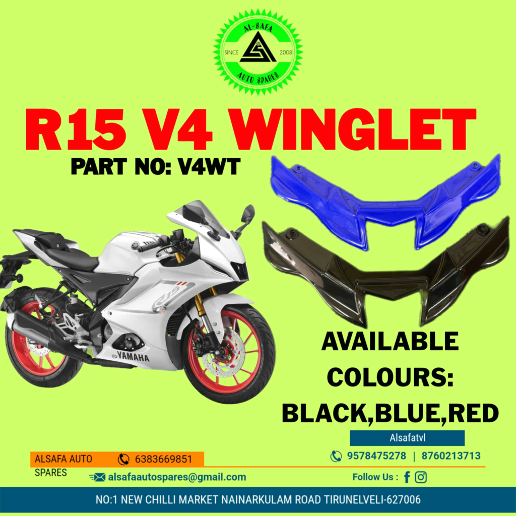 in Bike Accessories, Extra Fittings R15 V4 WINGLET COLOURS V4WT by Alsafa Autospares November 6, 2023, 5:46 am 0share WhatsApp Facebook 0share WhatsApp Facebook See more Previous article SPLENDOR TAIL LAMP LED RUNNING TYPE Next article TYRE HUGGER WITH CLAMP